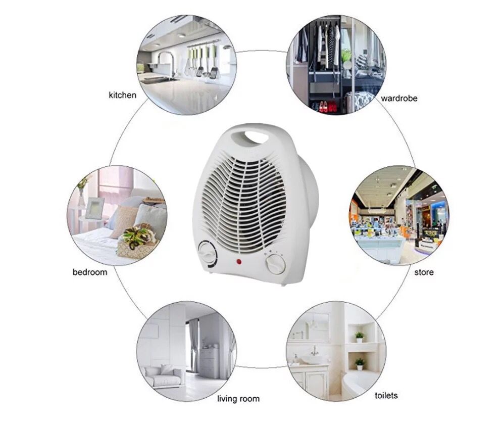 Gracias a la protección contra sobrecalentamiento, el calefactor con ventilador eléctrico. Se apaga cuando se calienta demasiado. Los diales giratorios situados en la parte delantera del calefactor le permiten cambiar el modo del ventilador y de calor. Por lo tanto, puede calentar despacio o a toda potencia una habitación. Podrá transportarlo y almacenarlo fácilmente en un armario.