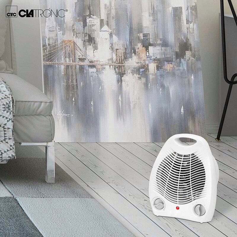 Ajuste la temperatura con el dial giratorio y elija uno de los dos ajustes de calor de 1000 y 2000 W. El ventilador, que distribuye el aire caliente, le permite calentar estancias pequeñas de su hogar rápidamente.