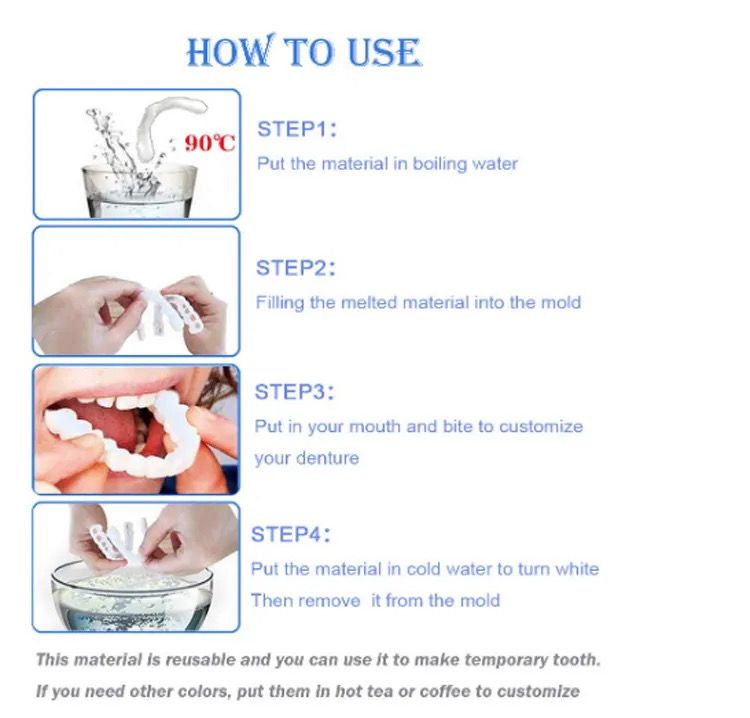 Son carillas dentales removibles de alta calidad, diseñadas para encajar perfectamente sobre tus dientes naturales, dándote una sonrisa blanca, alineada y atractiva en cuestión de segundos.